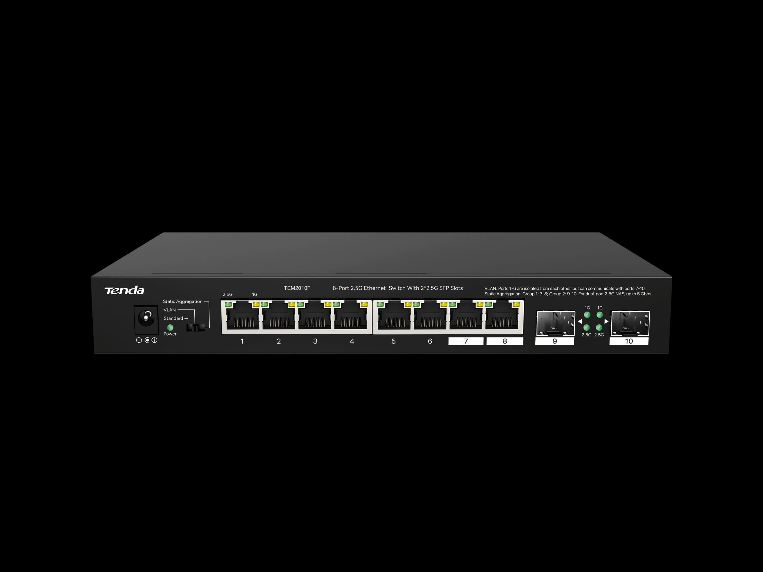 Tenda 8-Port 2.5G Ethernet Switch with 2x 2.5G SFP slots | TEM2010F