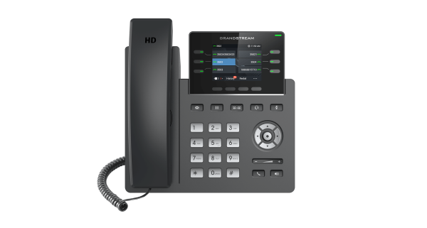 The Grandstream GRP2613 is a powerful 3-line carrier-grade IP phone designed with zero-touch provisioning for mass deployment and easy management. It features a sleek design and a suite of next-generation features including 24 virtual multi-purpose keys (VPKs), dual Gigabit ports, a color LCD screen with swappable face plates for easy logo customization and more.