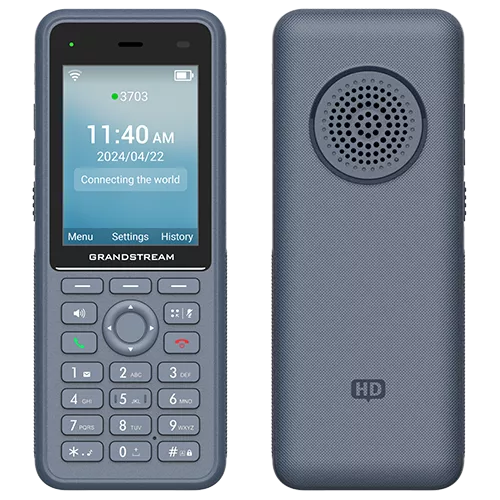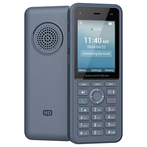 The Grandstream WP836 cordless Wi-Fi IP phone is designed for professionals in demanding sectors such as logistics, healthcare, security, and manufacturing. Featuring dual-band Wi-Fi 6 (802.11ax), it provides reliable connectivity and seamless roaming. This phone supports three SIP accounts and three lines, delivering HD voice quality with dual microphones, Acoustic Echo Cancellation (AEC), Noise Shield Technology, and AI-based noise reduction for clear audio. A 2.8-inch colour LCD screen complements the long-lasting 3000mAh rechargeable battery, which provides up to 10 hours of talk time and 240 hours of standby. Its IP67 rating ensures the phone is waterproof, dustproof, chemical-resistant, and antibacterial. Bluetooth connectivity allows headset use, while a configurable push-to-talk button and multiple alarm functions, including man-down and no-movement detection, enhance safety and efficiency. Centralised management is facilitated via Grandstream’s Device Management System (GDMS).