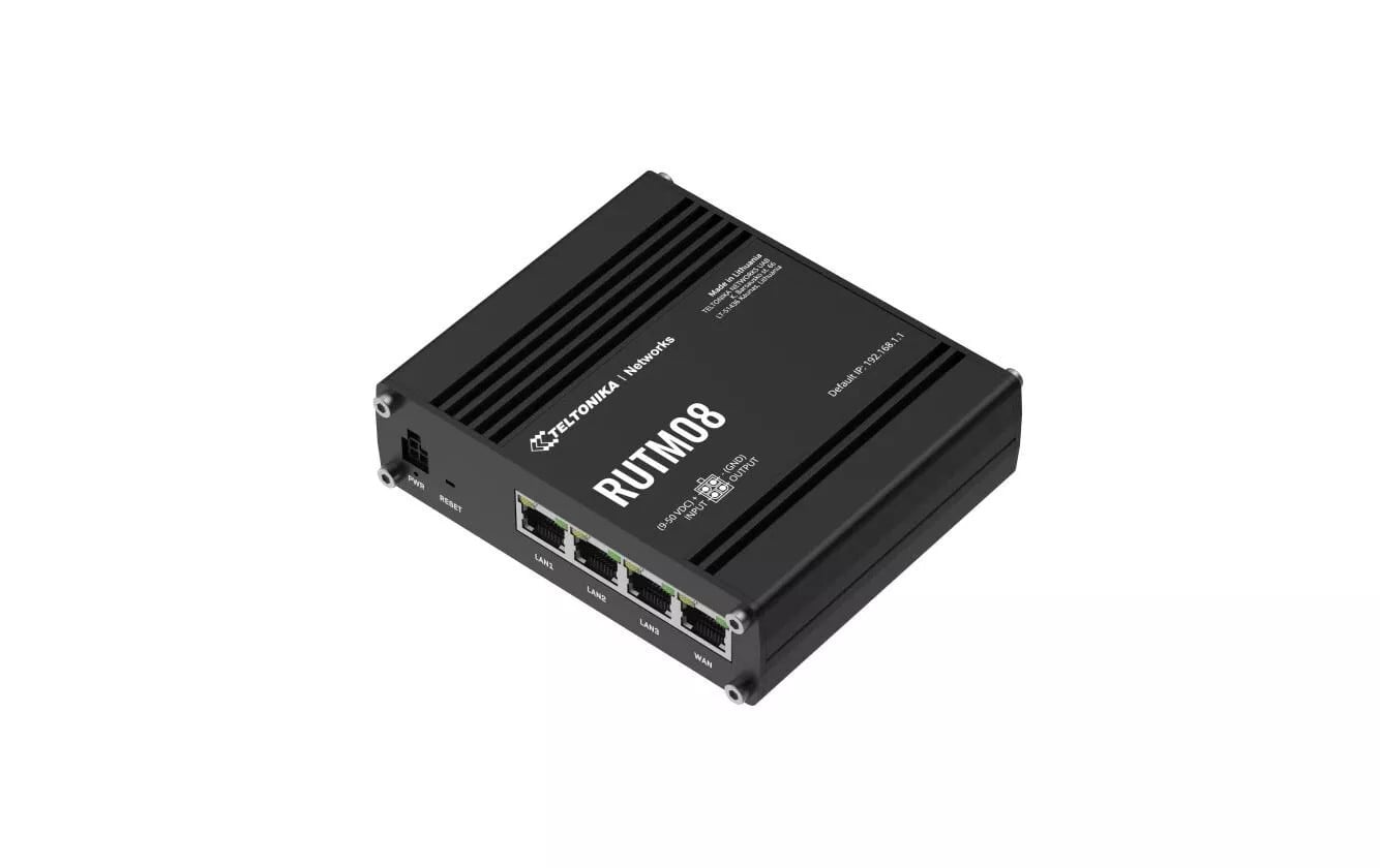 The RUTM08 industrial Ethernet router delivers secure and reliable wired network connectivity tailored for demanding applications. This device features multiple Ethernet ports and is powered by RutOS, enabling advanced networking capabilities. Key functionalities include VPN support for secure remote access, a built-in firewall that enhances network security, and remote management options for streamlined administration. The RUTM08 is designed to ensure dependable data transmission in challenging industrial environments, making it suitable for various automation, monitoring, and control systems.