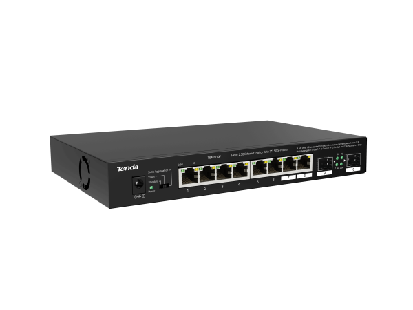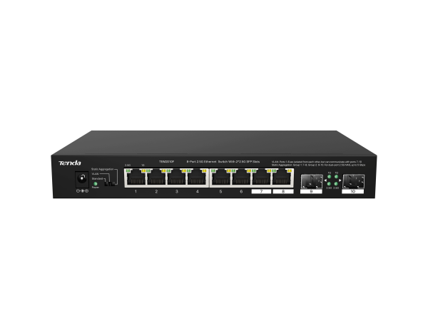 The Tenda TEM2010F is an 8-Port 2.5G Ethernet Switch with 2× 2.5G SFP slots, designed for high-speed and reliable networking. It supports 2.5Gbps speeds per port, making it ideal for businesses, gaming, and high-bandwidth applications. The SFP slots allow for flexible fiber connectivity, enhancing network expansion.