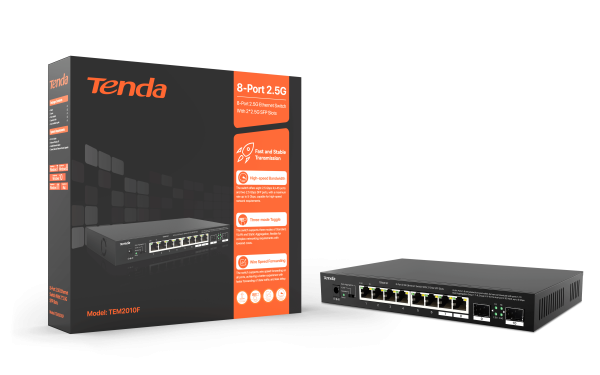 Tenda 8-Port 2.5G Ethernet Switch with 2x 2.5G SFP slots | TEM2010F