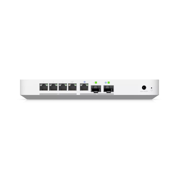 1 x 10G SFP+ & 10Gbps WAN port, 1 x 10G SFP+ LAN, 4 x 2.5Gbps ports, 5Gbps IDS/IPS, Managed with Cloudkey, Official hosting, UniFi Network server
